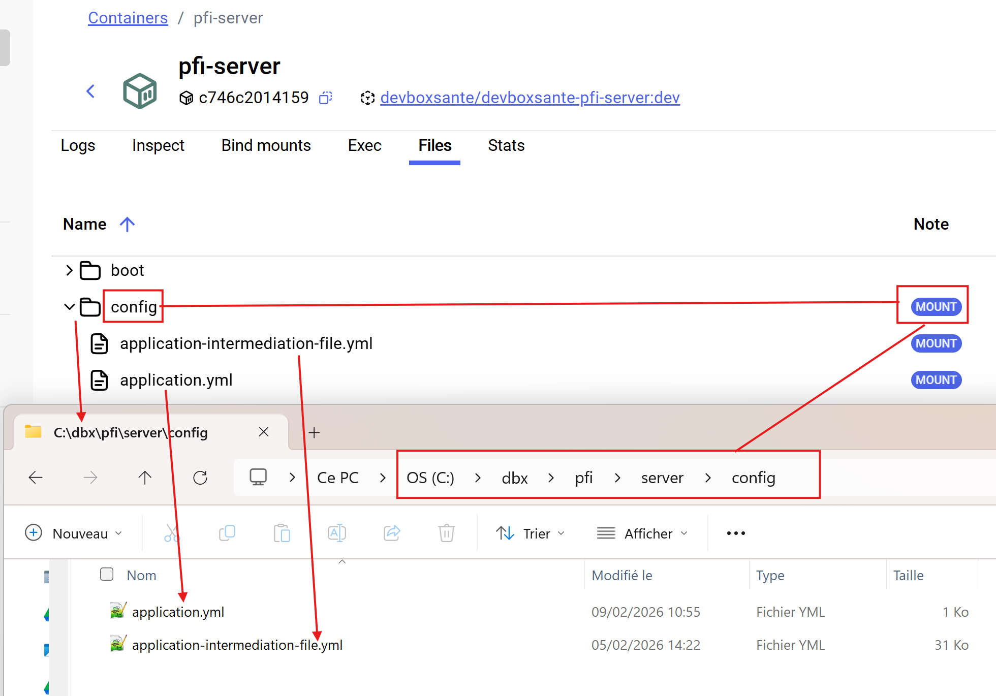 - C:/dbx/pfi/server/config:/config # contient la config springframework (application.yml)