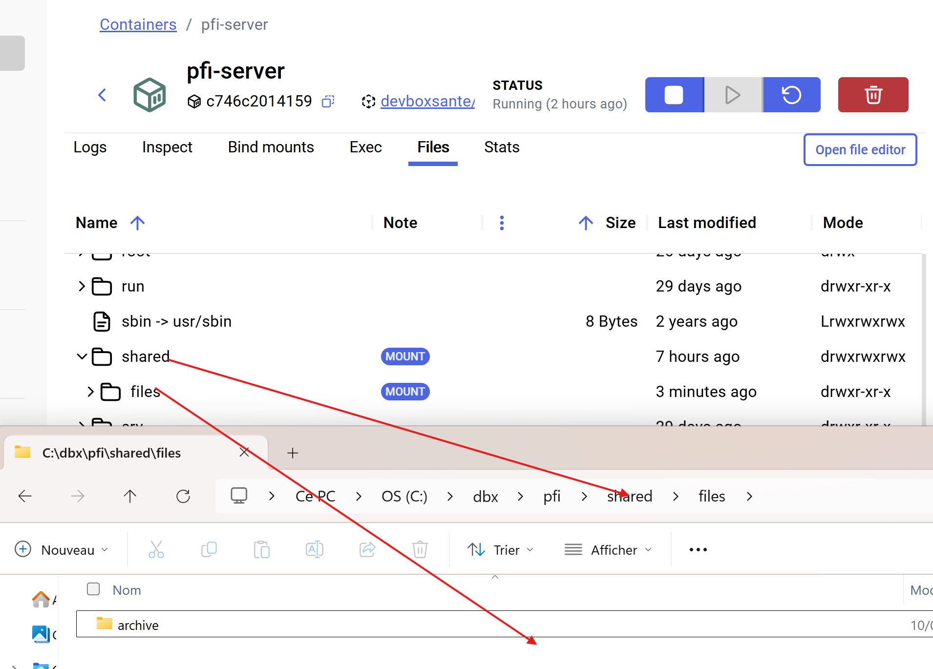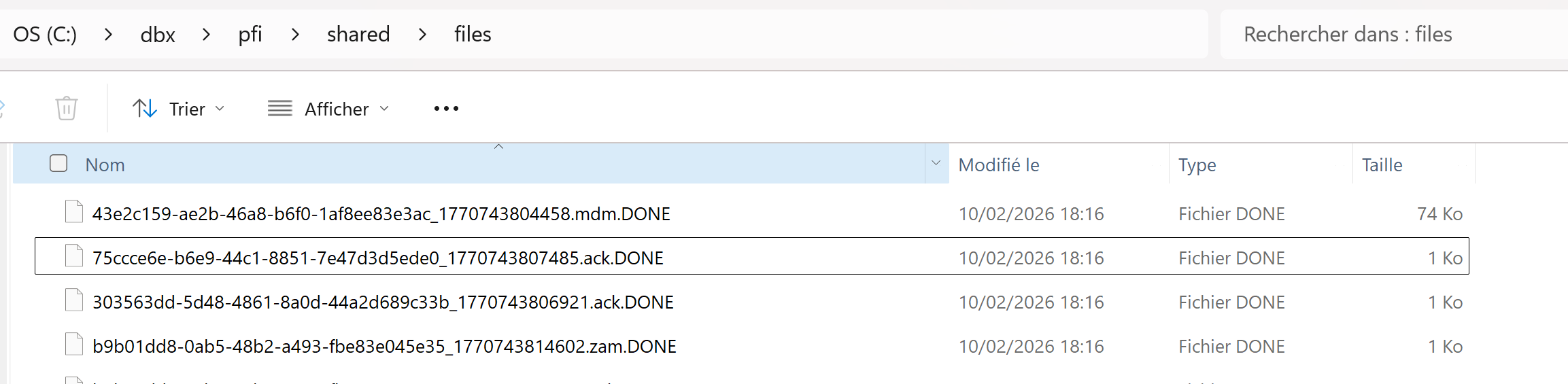 - C:/dbx/pfi/shared:/shared # volume partagé avec la pfi