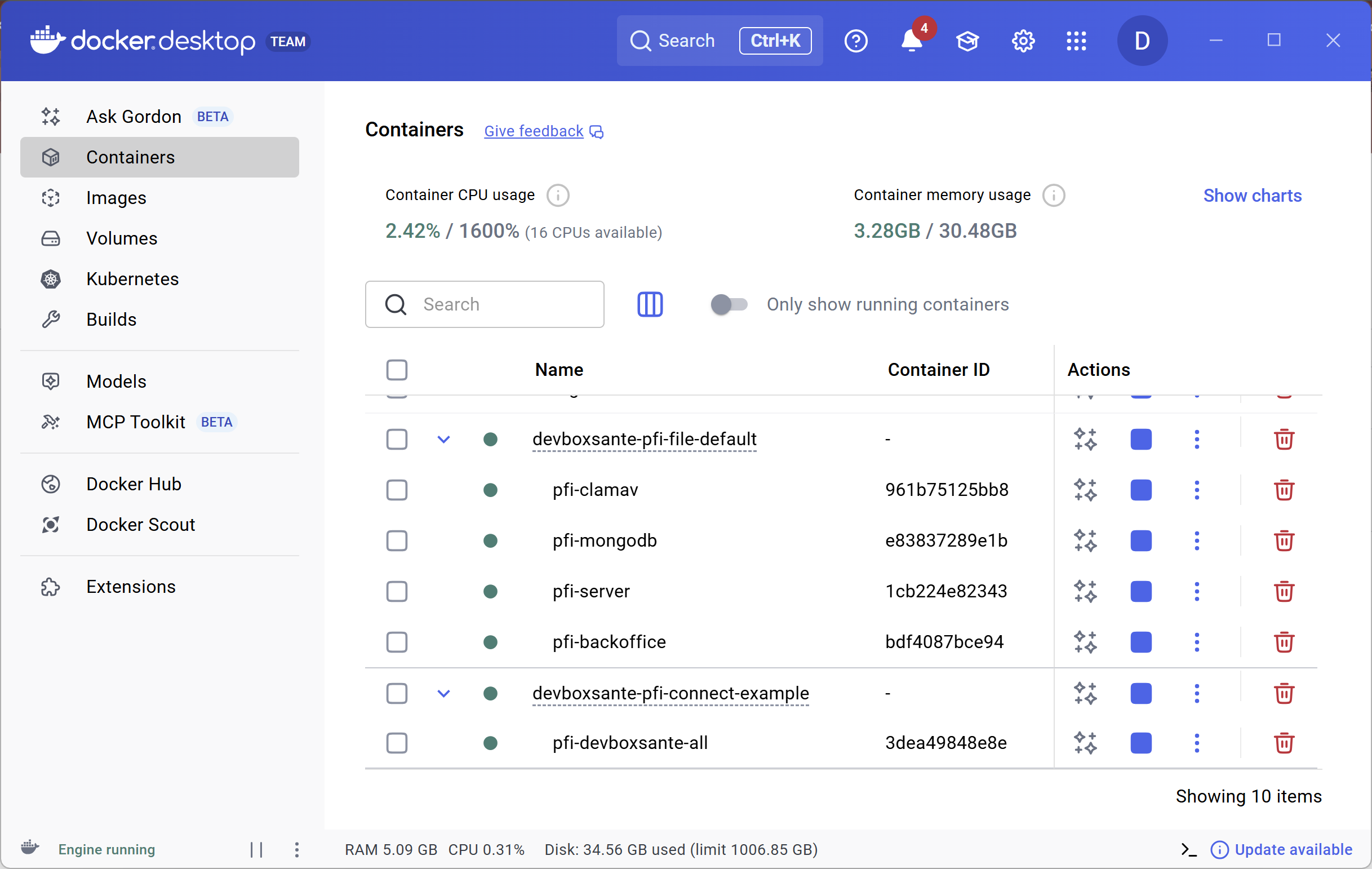 Et on obtient une nouvelle “stack” docker devboxsante-pfi-connect-example :