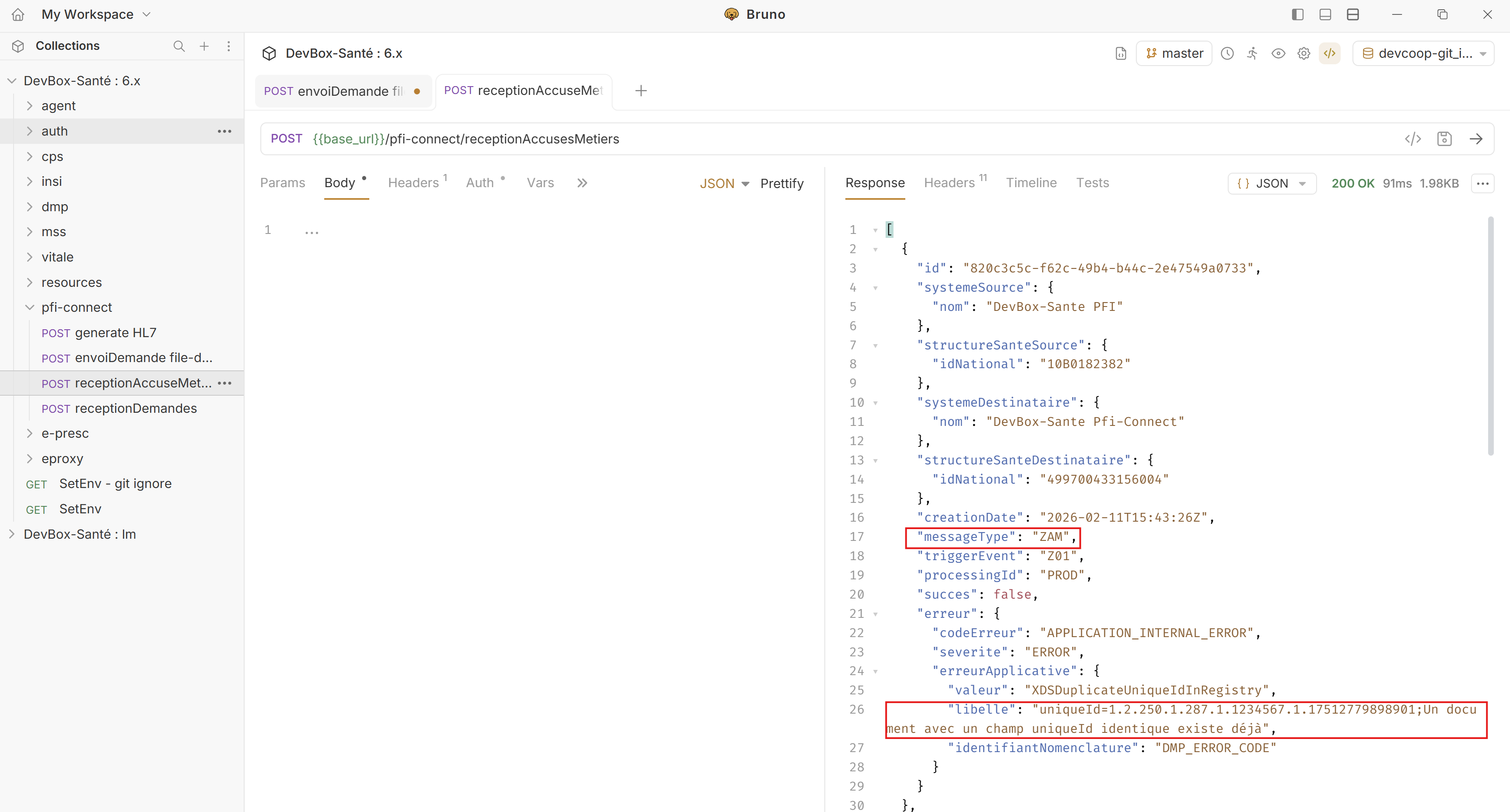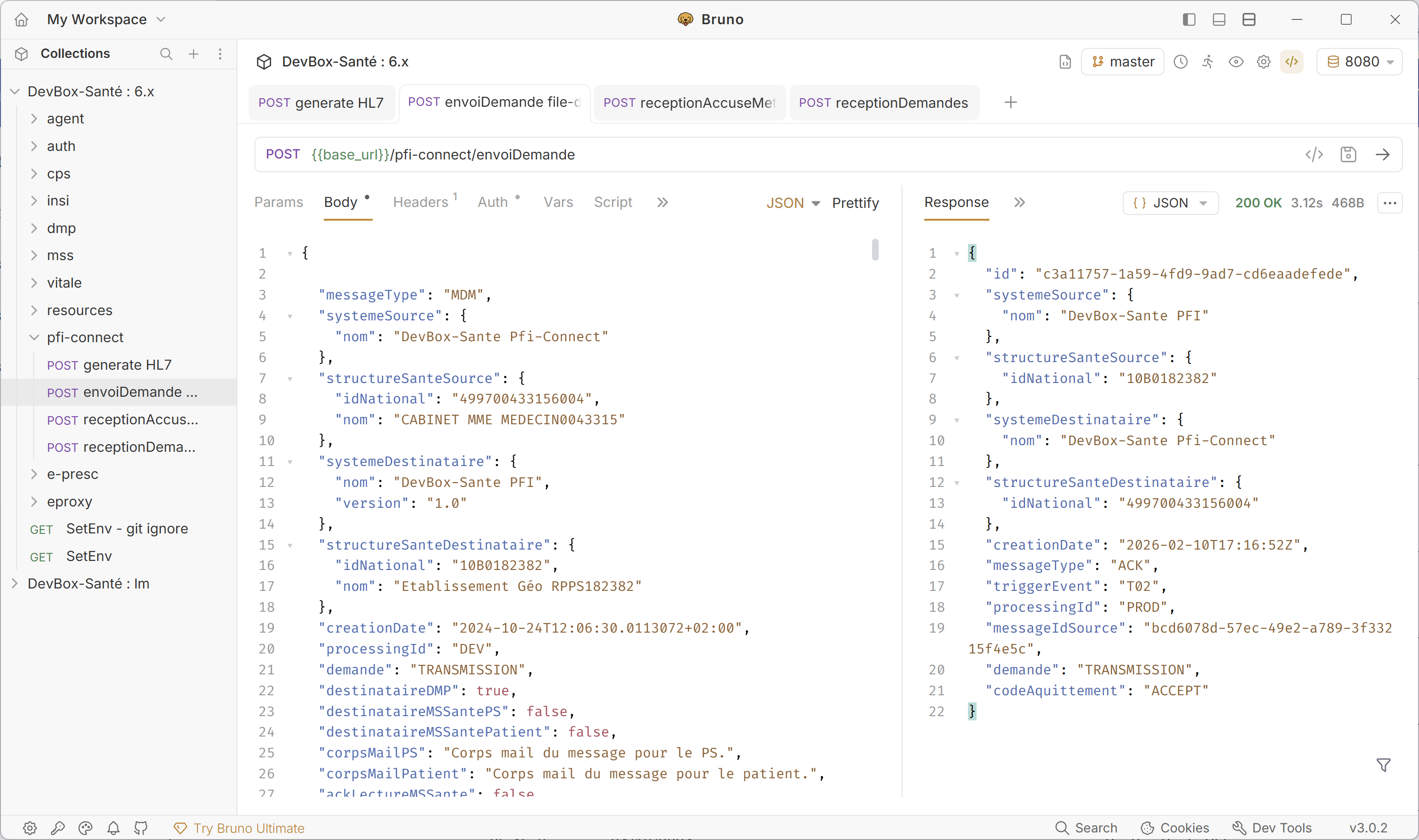 Il ne reste plus qu’à tester avec les exemples Bruno à notre disposition : https://bitbucket.org/devbox-sante/dbx-examples-bruno/src/master/dbx/pfi-connect/